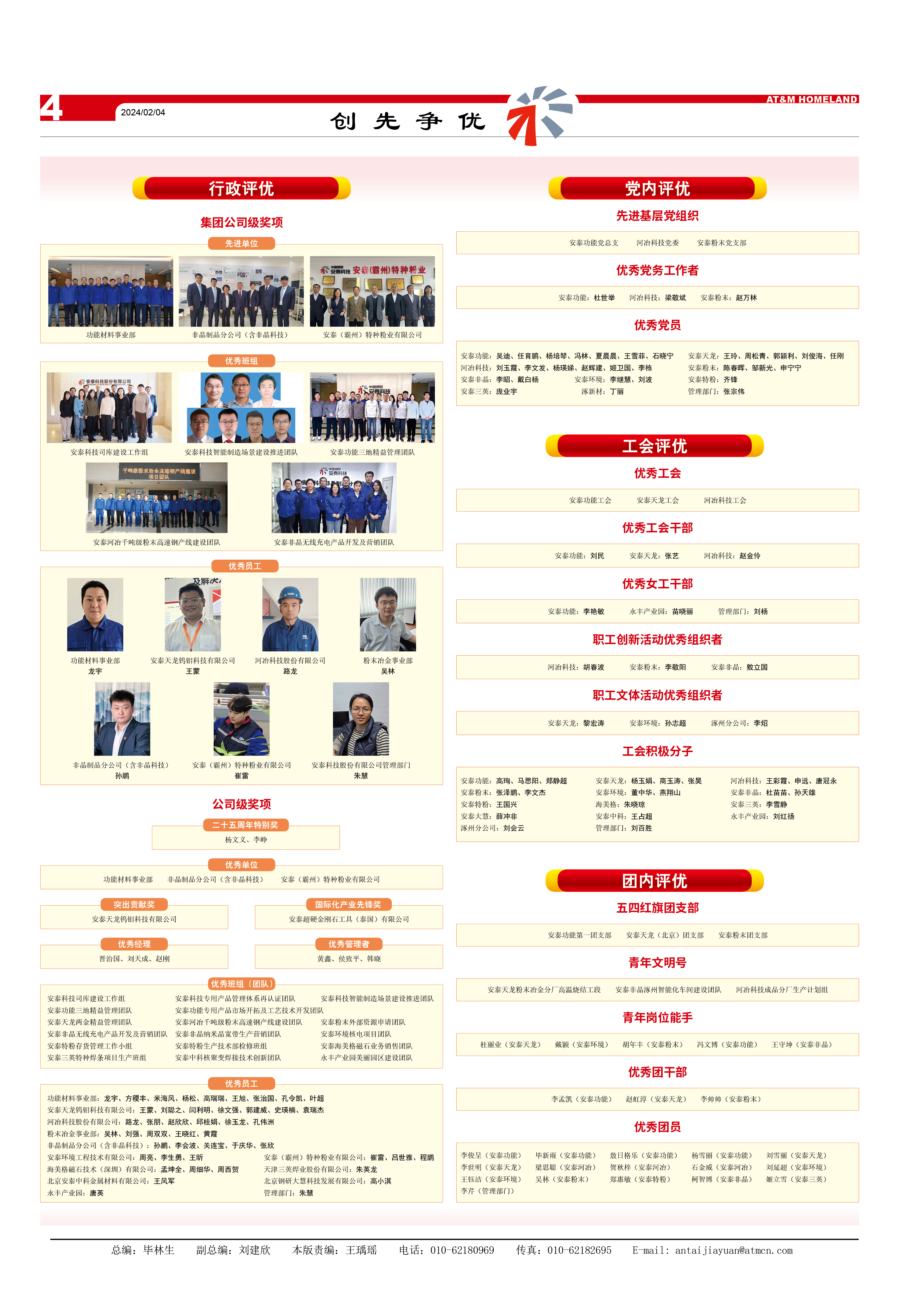 李俊呈(安泰功能)、畢新雨(安泰功能)、敖日格樂(安泰功能)、楊雪麗(安泰功能)、劉雪麗(安泰天龍)、李世明(安泰天龍)、梁思聰(安泰河冶)、賀秋梓(安泰河冶)、石金威(安泰河冶)、劉延超(安泰環境)、王鈺潔(安泰環境)、吳林(安泰粉末)、鄭惠敏(安泰特粉)、柯智博(安泰非晶)、姬立雪(安泰三英)、李芹(管理部門)