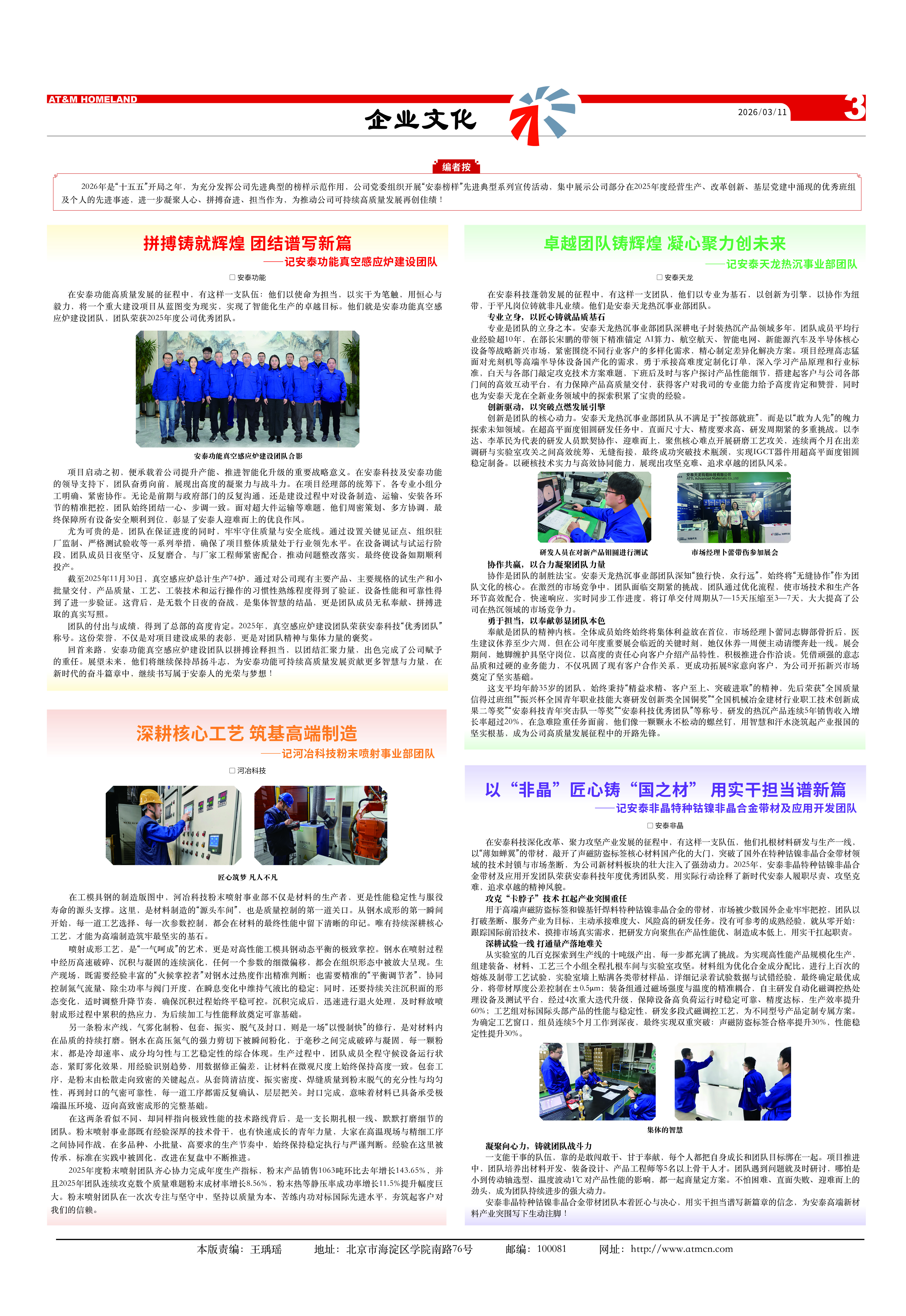 2026年是“十五五”開局之年,為充分發(fā)揮公司先進(jìn)典型的榜樣示范作用,公司黨委組織開展“安泰榜樣”先進(jìn)典型系列宣傳活動,集中展示公司部分在2025年度經(jīng)營生產(chǎn)、改革創(chuàng)新、基層黨建中涌現(xiàn)的優(yōu)秀班組及個(gè)人的先進(jìn)事跡,進(jìn)一步凝聚人心、拼搏奮進(jìn)、擔(dān)當(dāng)作為,為推動公司可持續(xù)高質(zhì)量發(fā)展再創(chuàng)佳績!