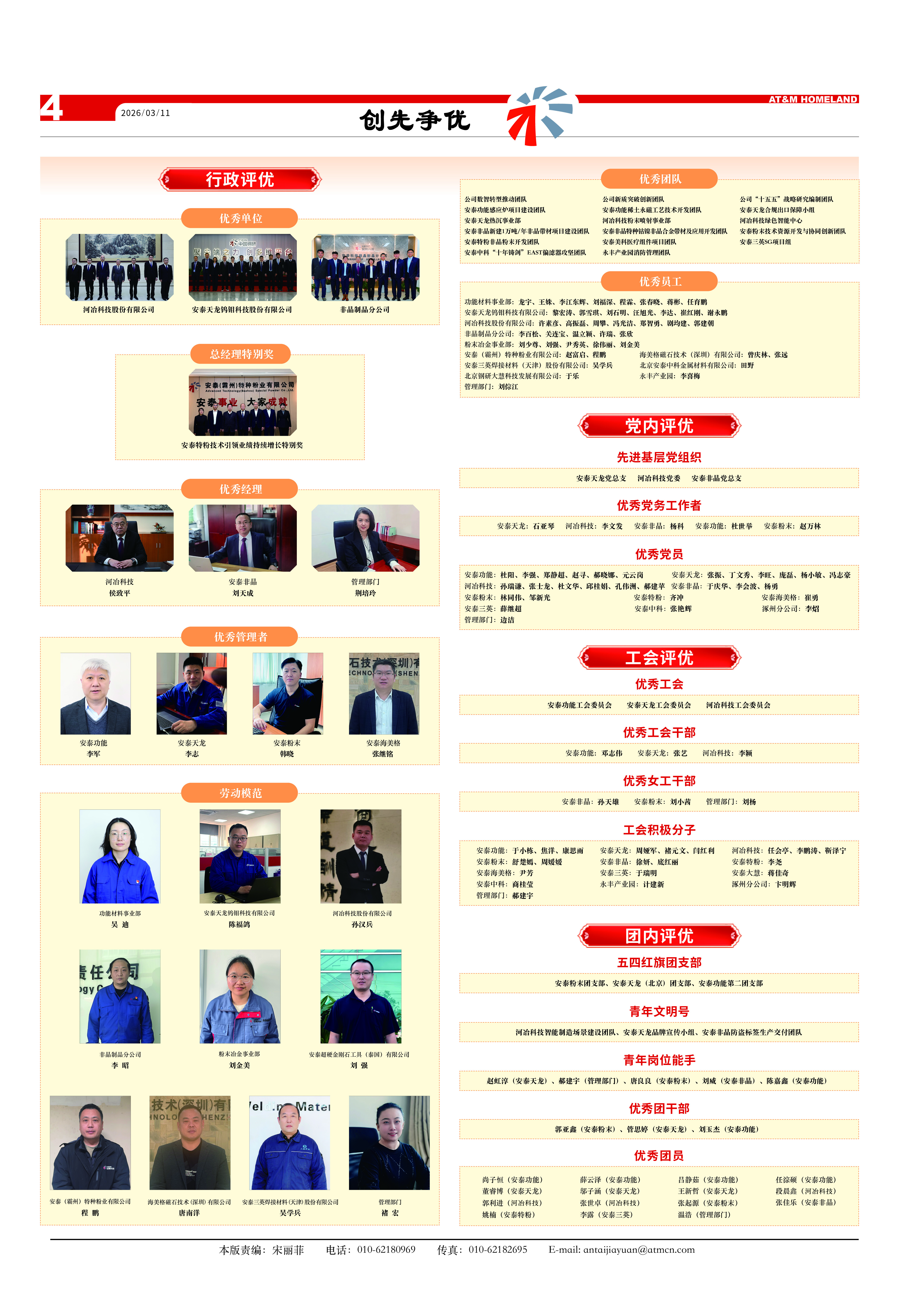 趙虹淳(安泰天龍)、郝建宇(管理部門)、唐良良(安泰粉末)、劉威(安泰非晶)、陳嘉鑫(安泰功能)